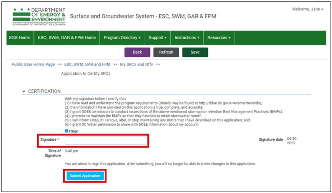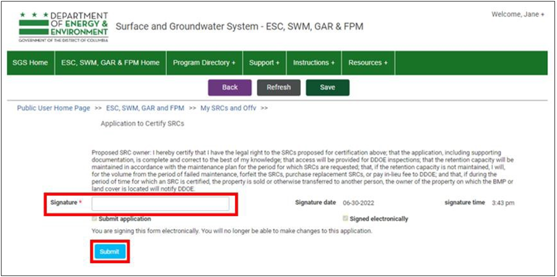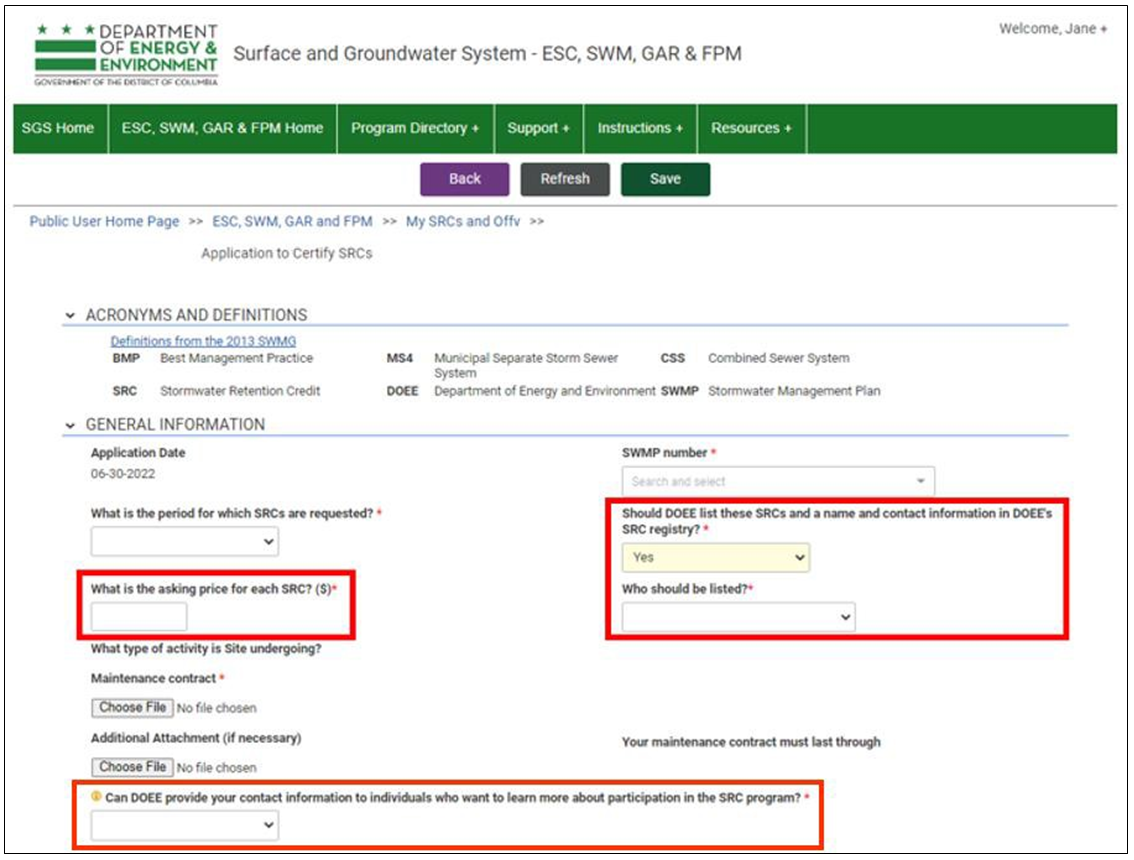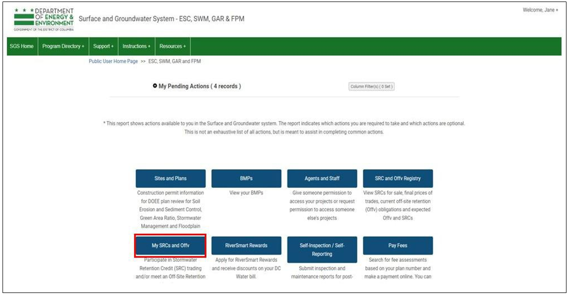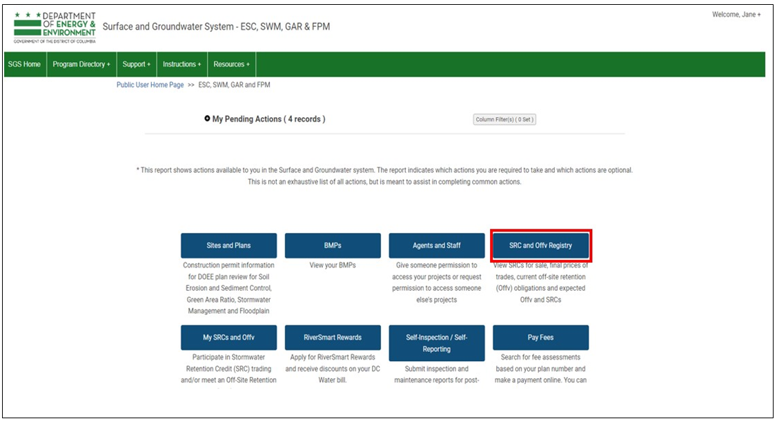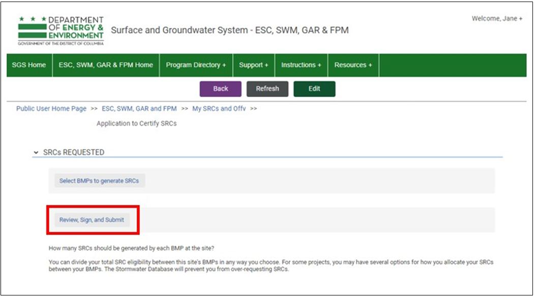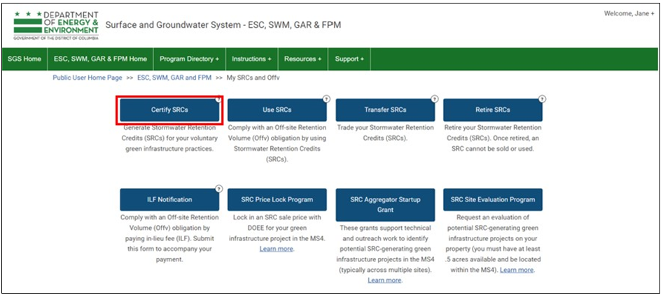 This guide explains how to apply online to certify Stormwater Retention Credits (SRCs) using the Department of Energy and Environment's (DOEE's) Surface and Groundwater System (SGS), available at doee.dc.gov/sgs