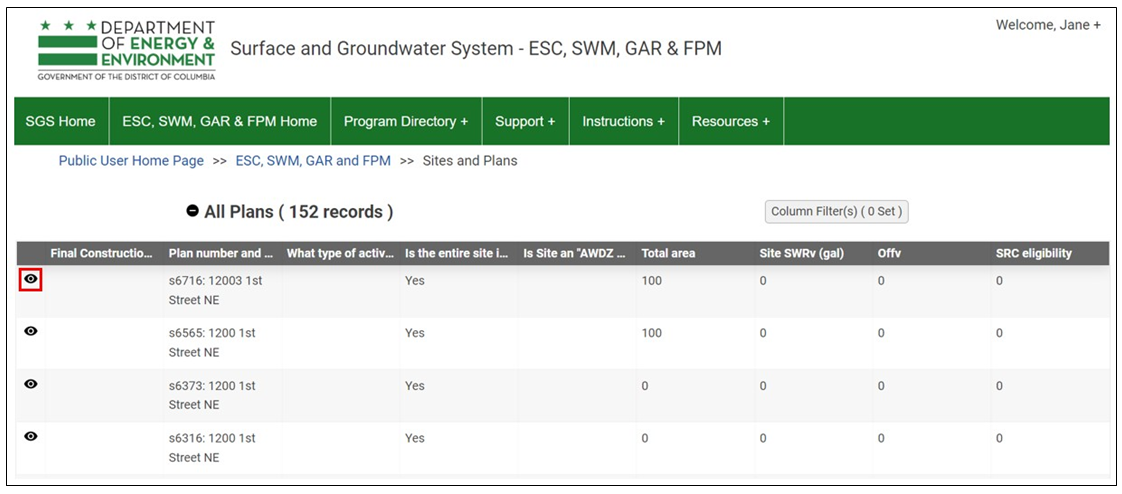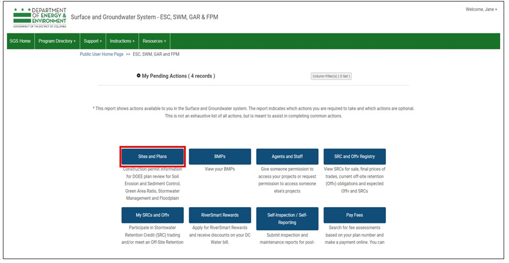 Log in to the SGS and click the Erosion, Stormwater, Green Area Ratio and Floodplain button.